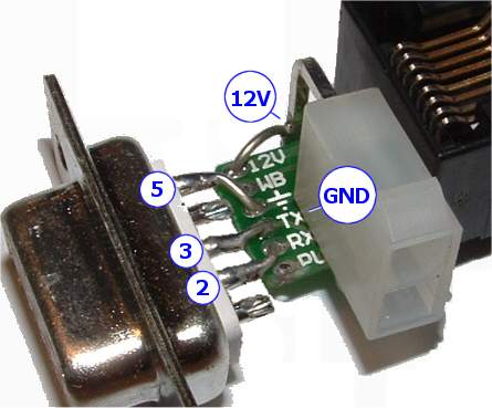 For clarification, the adapter schematic is shown here with the connections from the PC, LD02 and the power supply.