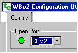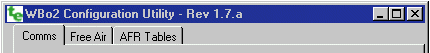 The last selected COM port will be remembered, and if the port changes, or a WBo2 unit is not connected, the next time CONF is run the main screen may take a few extra seconds before appearing. |