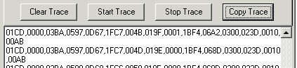 Use the [Start Trace] and [Stop Trace] buttons to get an ASCII listing of the Status frames. [Clear Trace] simply clears the trace buffer of old information, and [Copy Trace] puts all the trace buffer into the clipboard so a simple paste operation can, for example, paste it into an email for us to diagnose.